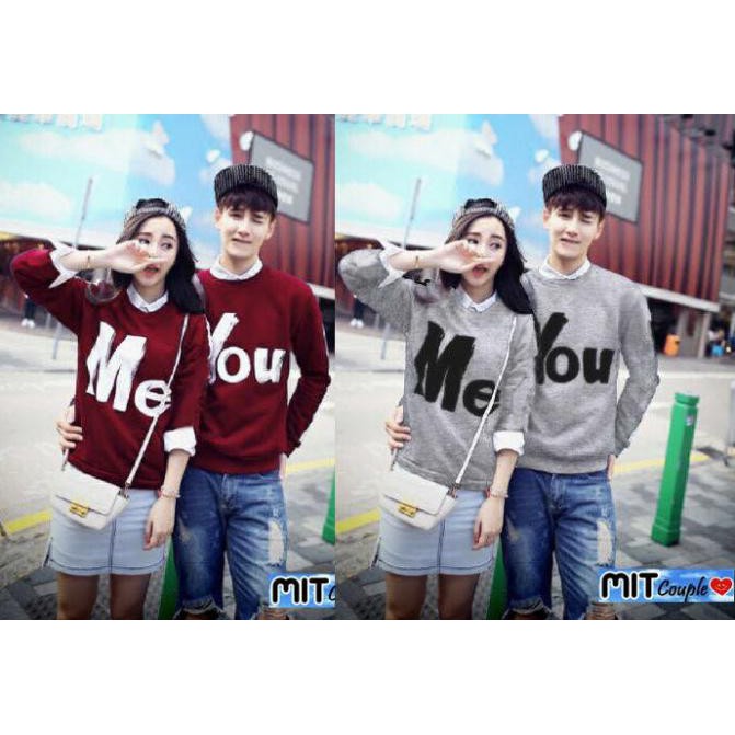 Name: Super Sale - Kaos Couple You Me Lengan Panjang - Baju Pasangan Maron Abu Sweet Couple